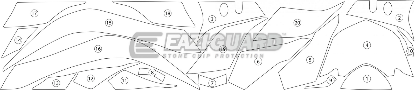 Eazi-Guard is supplied in a pre-cut kit format, and has high elasticity, meaning that it is extremely conformable around even tight radii and compound curves, making it easy to fit.